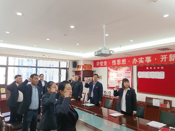 新当选支部书记张海刚带领全体党员重温了入党誓词,并代表新一届党支部委员会作表态发言。张海刚表示,新一届支部委员会将坚持以习近平新时代中国特色社会主义思想为指引,紧紧围绕公司发展中心工作,加强公司党的建设,严肃党内政治生活,充分发挥党员先锋模范作用,以党建引领公司高质量发展,确保上级党组织决策部署在蒙泰保理支部得到不折不扣的落实。