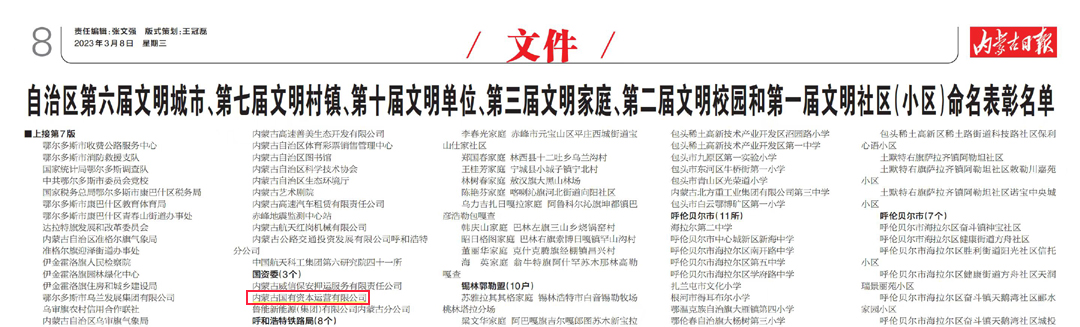 荣誉的取得,浸润着国资运营上下孜孜求索、拼搏奉献的智慧和汗水。公司将进一步加强精神文明建设,带领全体干部职工以更加昂扬的精神状态担当作为、干事创业,继续开创文明建设工作新局面。